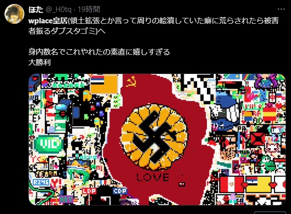 | … | 27725/08/15(金)08:03:37No.1343317928そうだねx1>これ最低でも自分の現在地の周囲にしか書けない >みたいな縛りがあれば面白くなりそうなのに それだと中国とか真っ白になる |