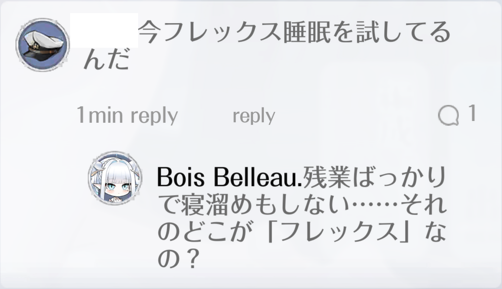 | … | 3525/08/15(金)13:35:53No.1343396175+ボア・ベローが世話焼きな上にスキンだと割と甘えてきていい… |