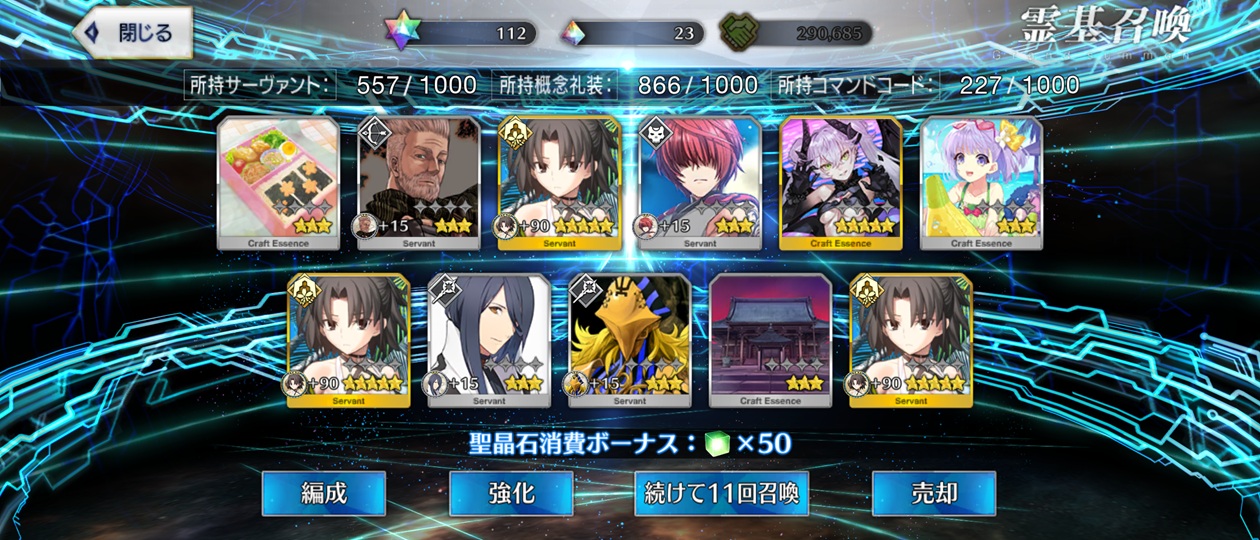 | … | 77525/08/16(土)11:23:41No.1343700933+キャスニキのコイン欲しいけどポカもはじめちゃんももう宝具重なってるのが悩みどころ |