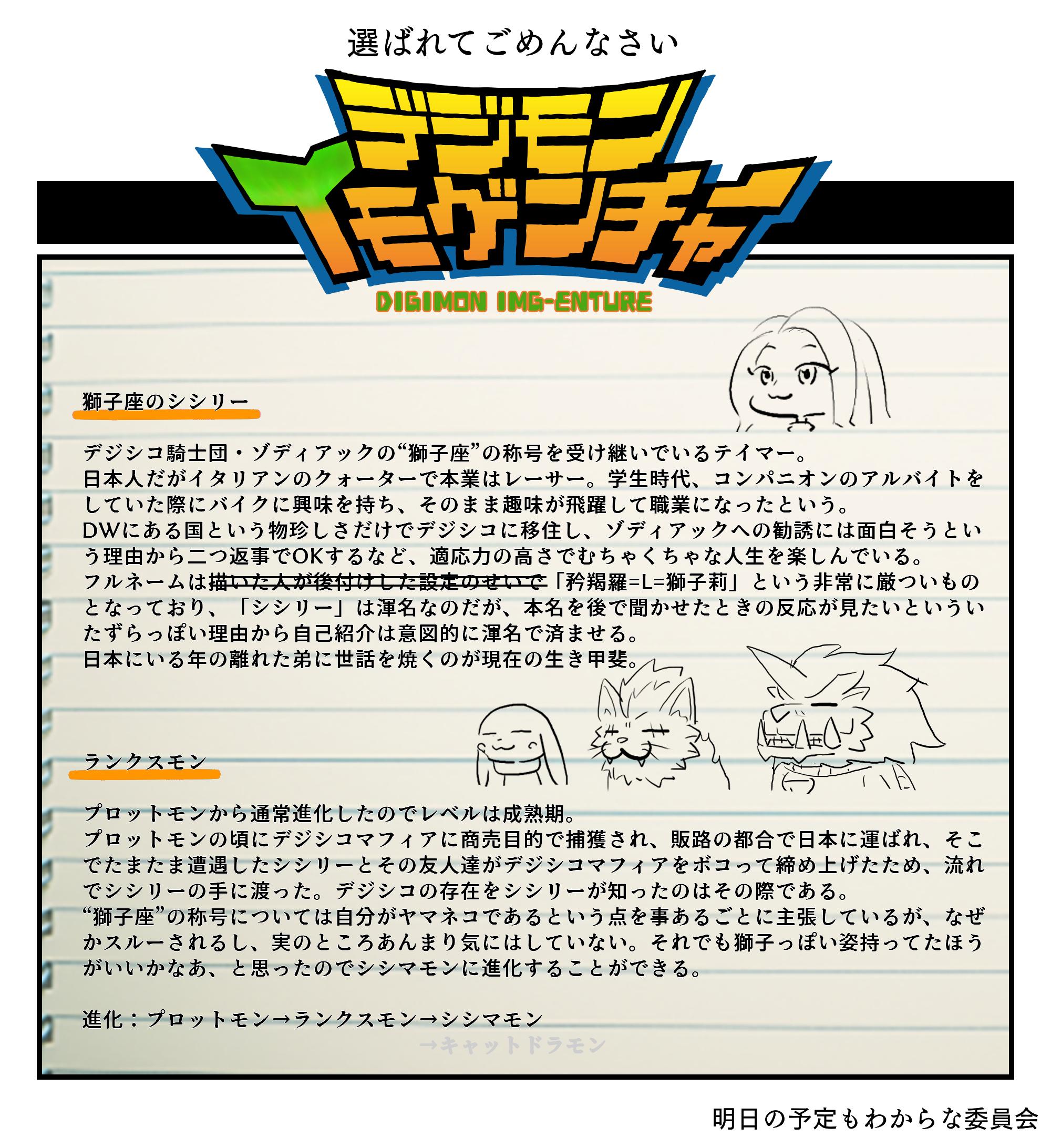 シシマモンの口回り(具体的には牙の形)は公式画像がジャギってるせいで全然わかんなかったけど分からないなら分からないなりに描くスタイル