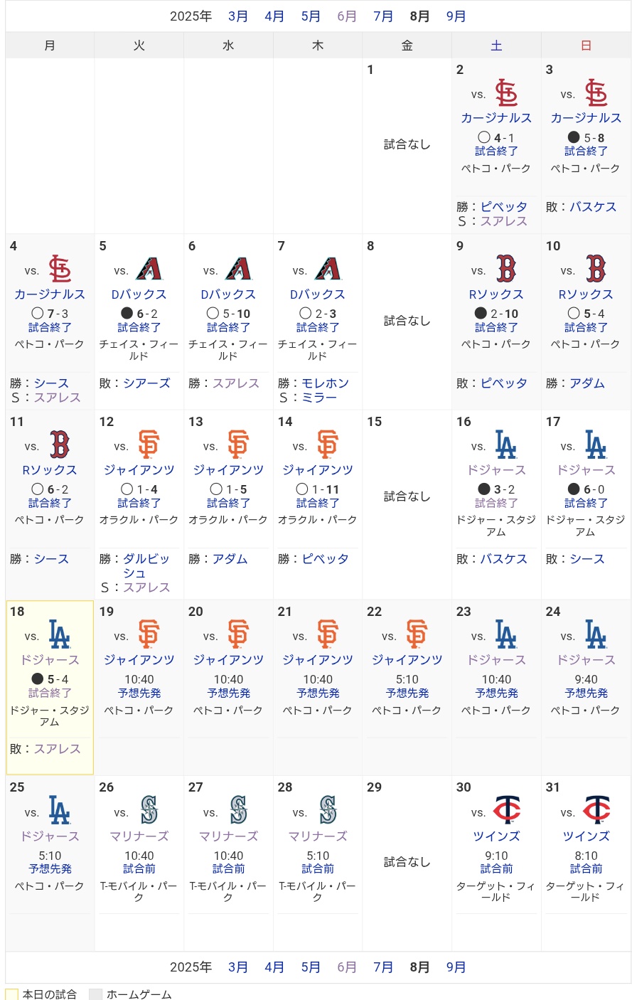| … | 1925/08/18(月)17:48:55No.1344501586+https://baseball.yahoo.co.jp/mlb/teams/2021025/schedule |