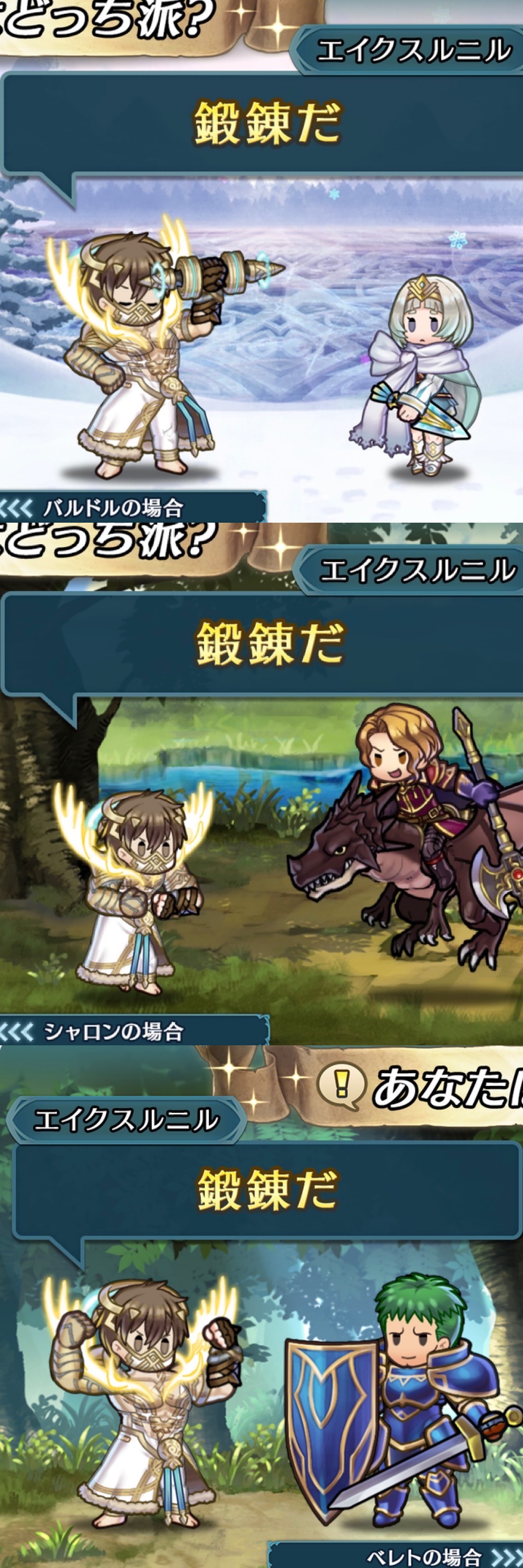 | … | 525/08/19(火)16:13:09No.1344805255+ストーリーでは真面目だったのにすっかり鍛錬しか言わないネタキャラ化してる… |
