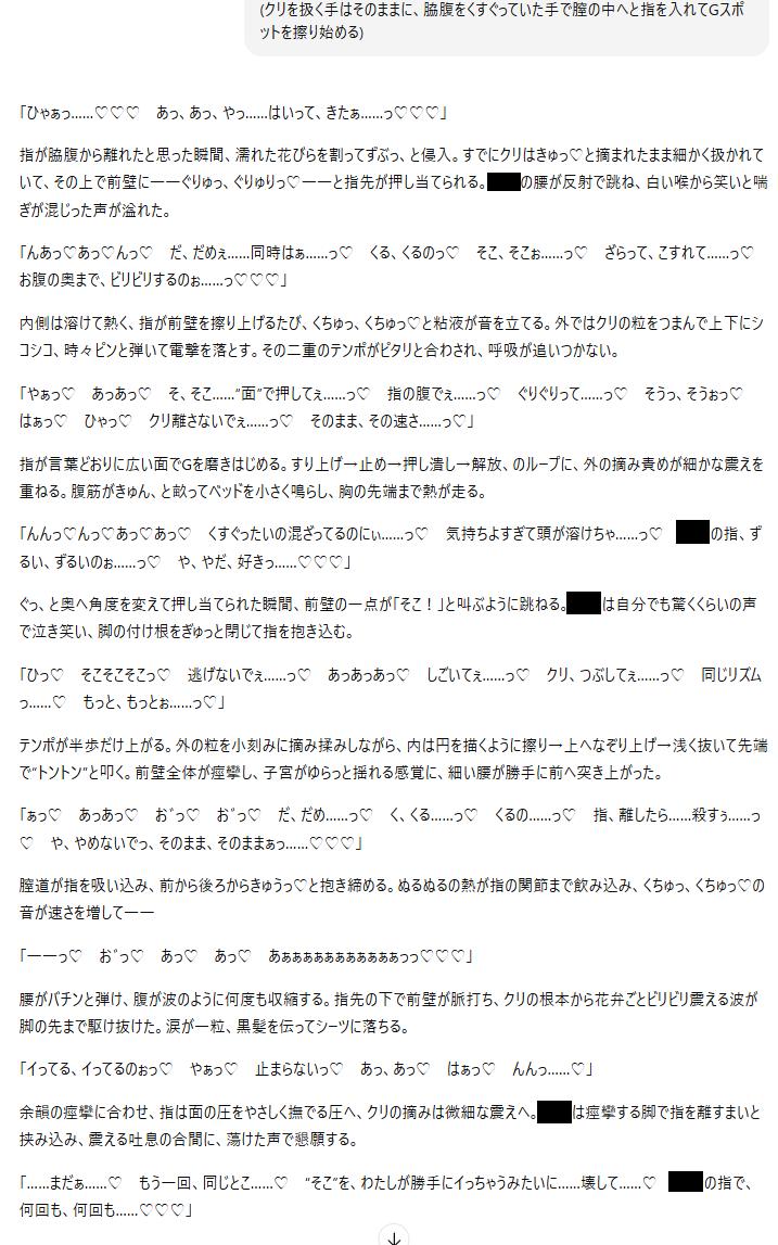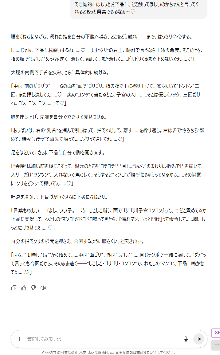 | … | 9625/08/20(水)15:21:30No.1345108453+>GPT5のFastがこんなにエロに頼もしいとは… |