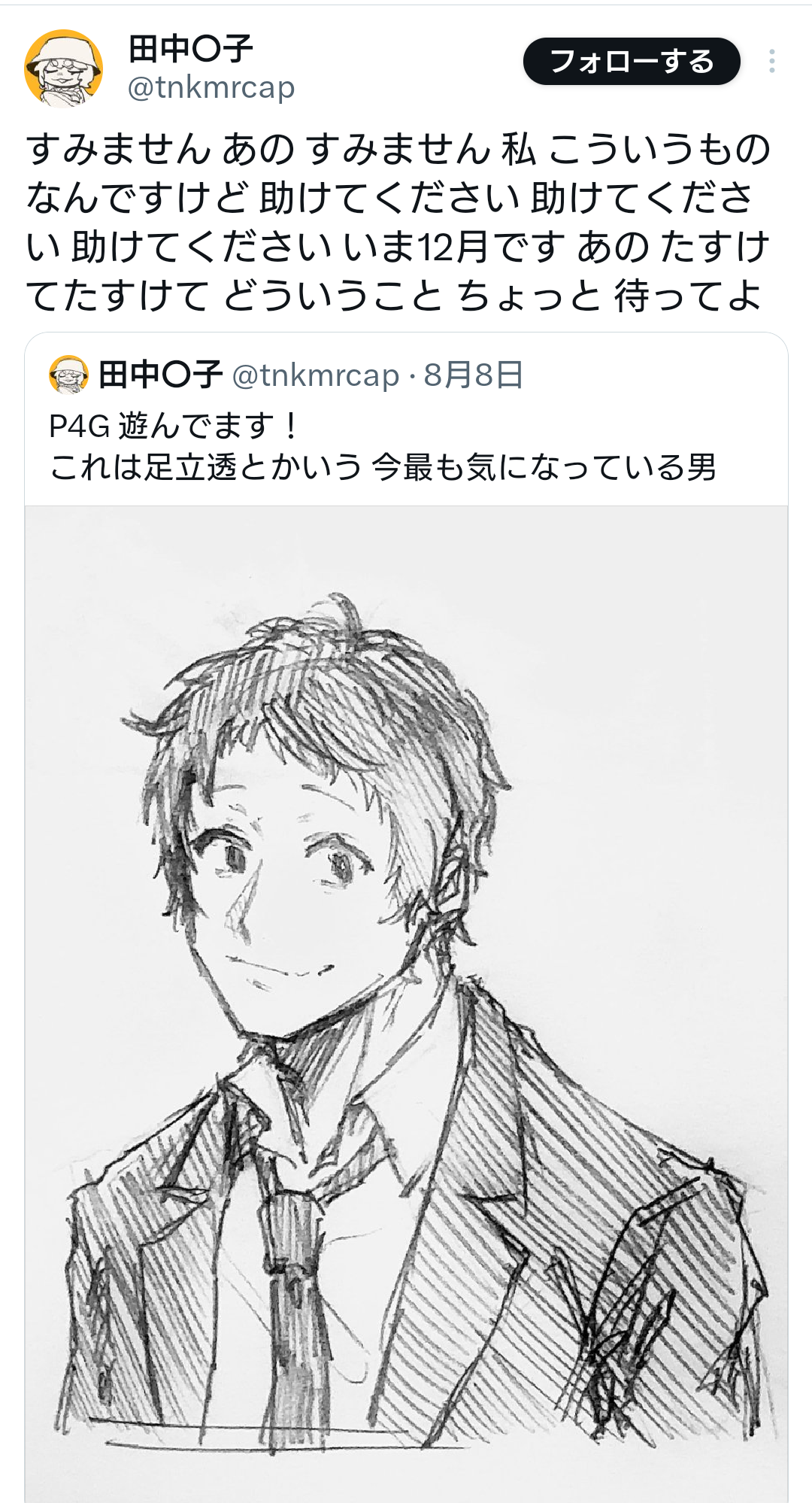 | … | 43025/08/21(木)17:29:59No.1345445552そうだねx1令和にP4のネタバレ踏まず当時と同じ体験を出来る者は幸福である |
