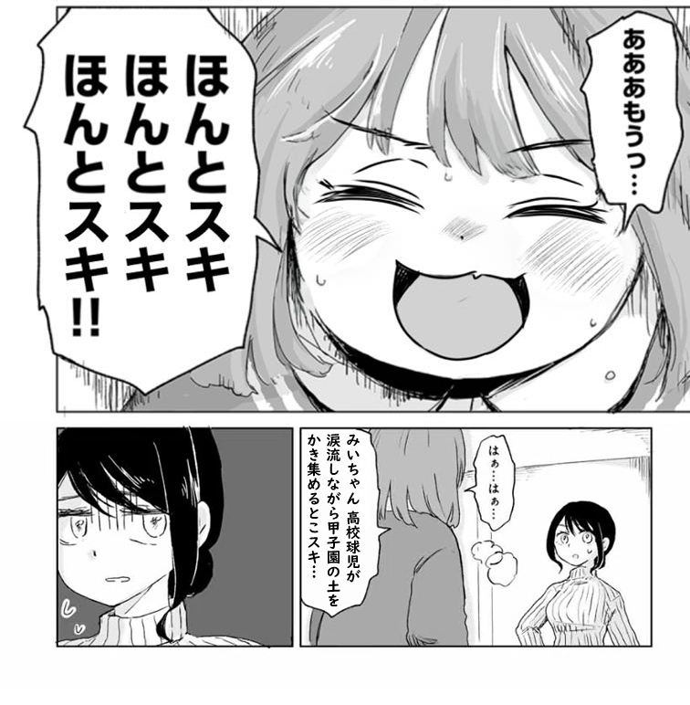| … | 4025/08/22(金)02:46:29No.1345618285+これはみいちゃんが逆転サヨナラ満塁ホームランを決められる12回裏のお話 |