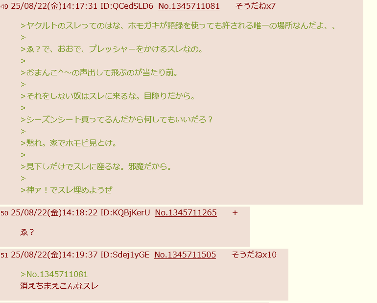 | … | 62325/08/22(金)18:27:27 ID:0aOjeY9UNo.1345764844+おお |