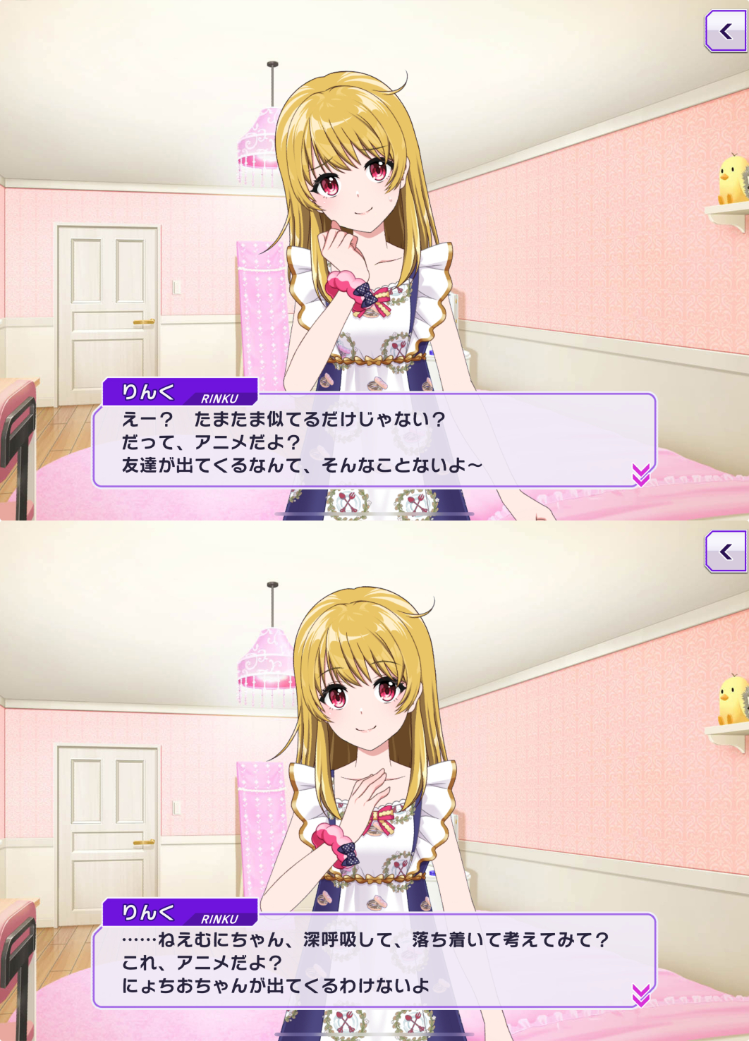 | … | 1425/08/22(金)20:14:38No.1345803222+しのぶ…最近りんくちゃんと仲いいね… |