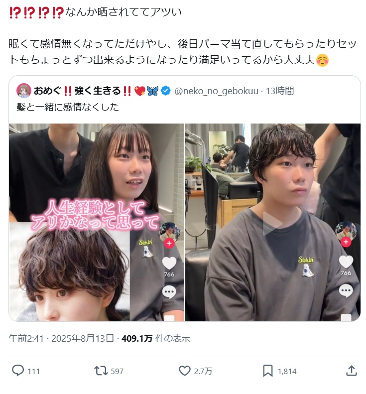 これ投稿者のアイコン的に美容師の宣伝で投稿されてるなかな