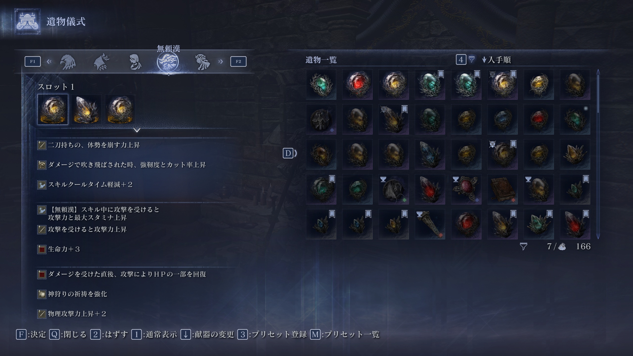 | … | 1425/08/23(土)11:23:30 ID:vcXCpirYNo.1346002193+無頼漢デビューのために遺物整理してたら案外強い遺物揃ってて驚いた |