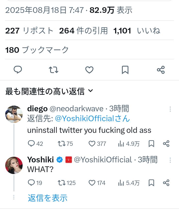 | … | 4025/08/23(土)15:03:53No.1346062796+YOSHIKIは許したけど絶対に許さないよ |