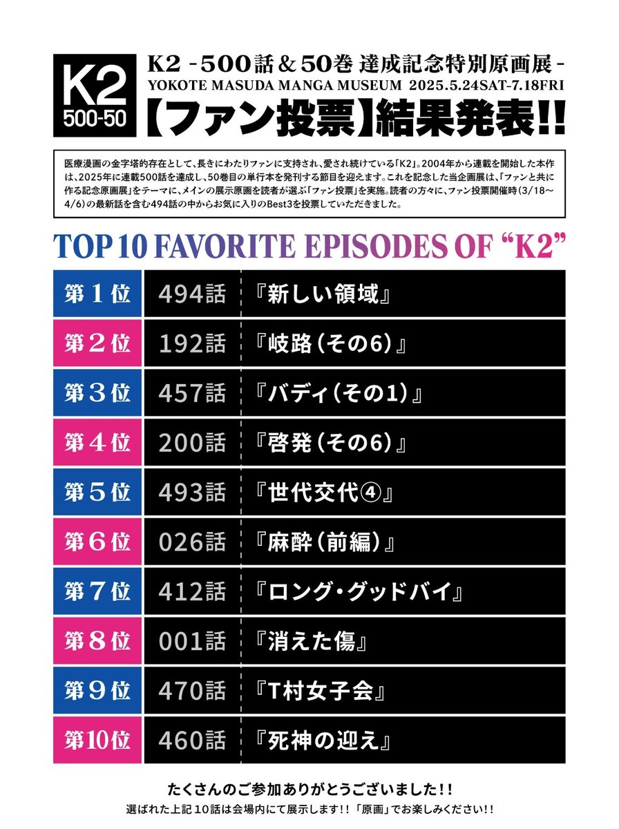 | … | 7425/08/23(土)22:02:29No.1346202042+原画展行ったら投票で選ばれたエピソードが展示されてたんだけどやっぱTETSU回多かった |