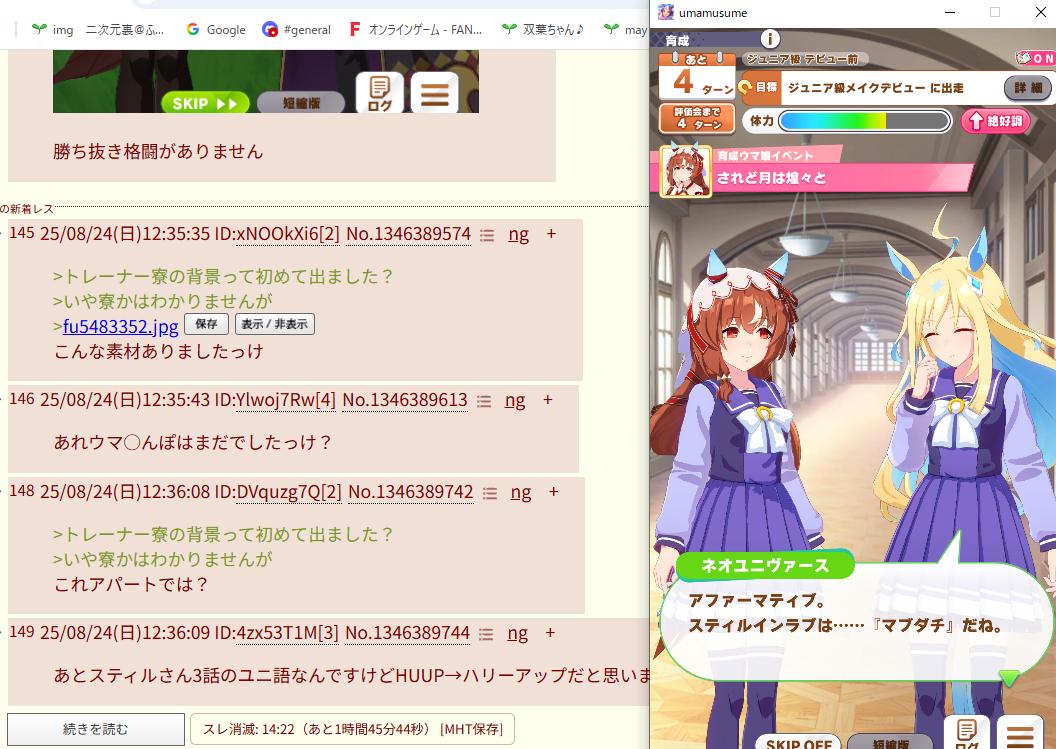 | … | 74625/08/24(日)14:06:42 ID:W.NPLbakNo.1346415655+スティルさんとユニちゃん仲が良くてかわいいですね… |