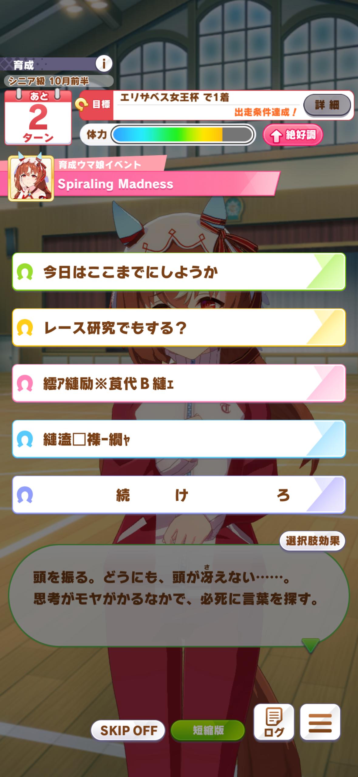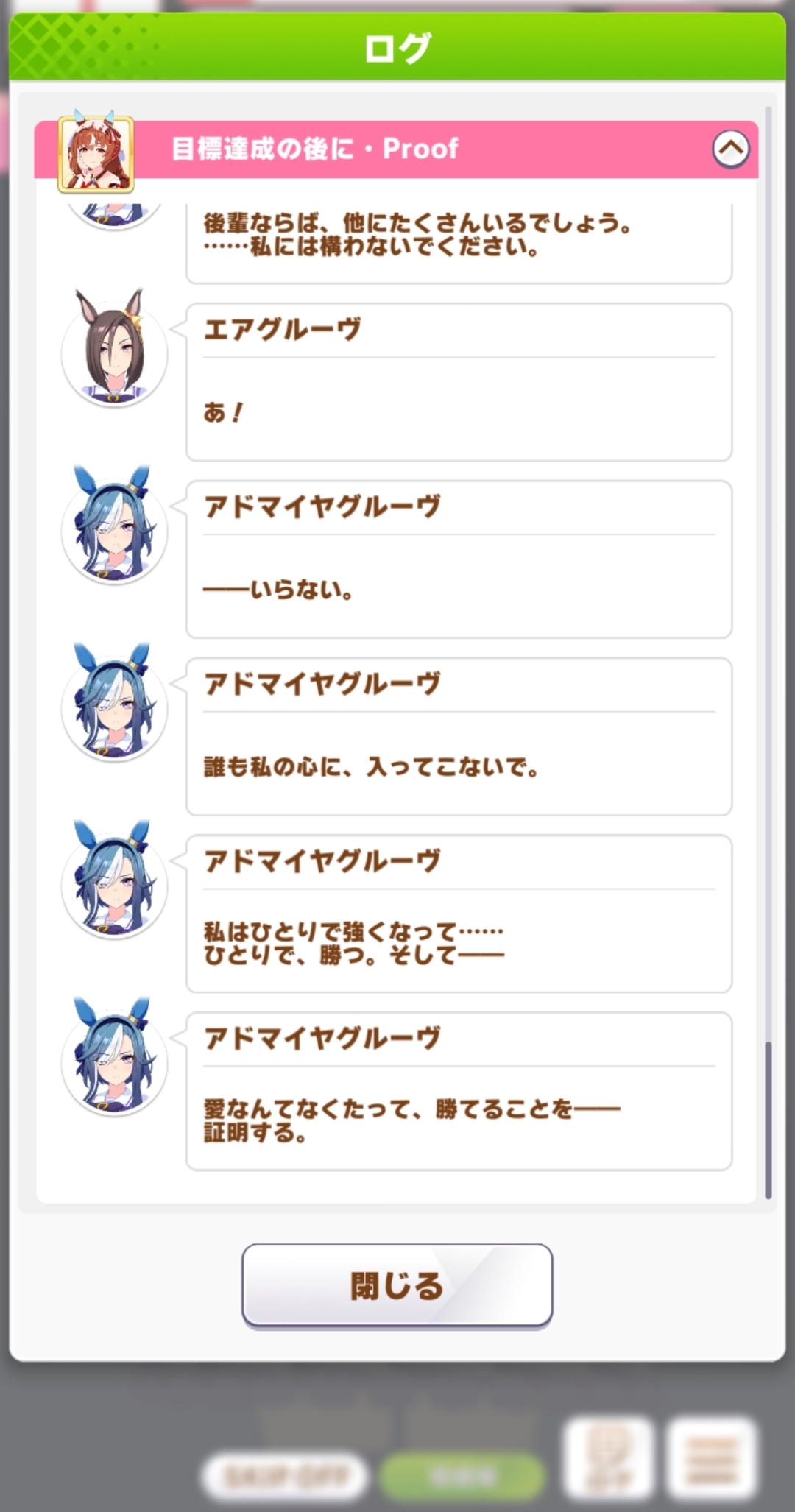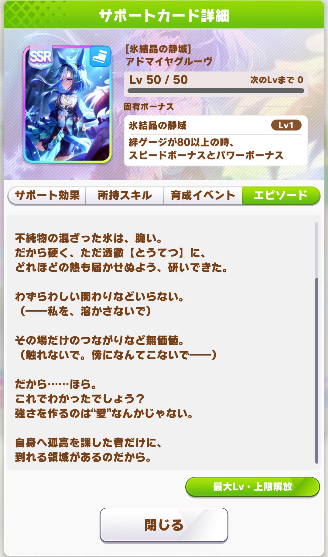 | … | 65925/08/24(日)13:51:23 ID:FzyFCnbsNo.1346411527+今育成してましたけど新バ戦スキップした時のポーズで急にはしたないモードの顔どアップで見せつけてくるのでびっくりして心臓止まりました |
