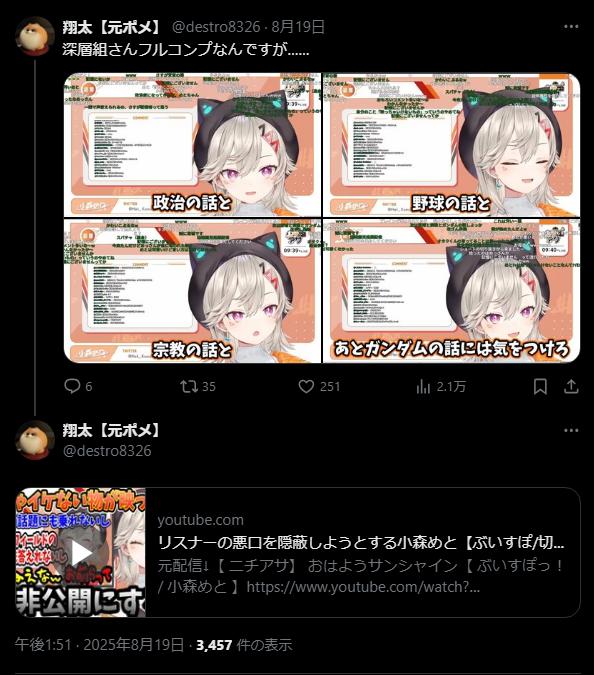 | … | 20725/08/24(日)14:44:58No.1346425693+https://x.com/nijisanji_app/status/1921171111938847163 |