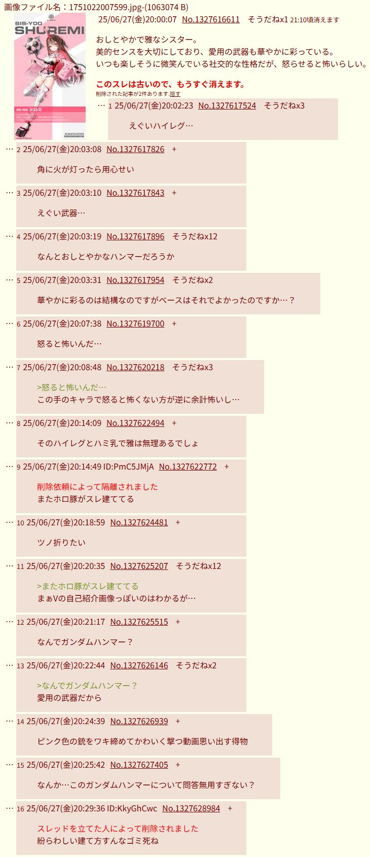 | … | 425/08/24(日)13:08:23No.1346399047+ここでガンダムの話でレスポンチしてるイメージないな |