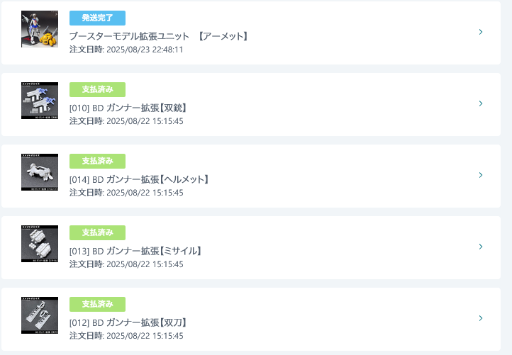| … | 1125/08/24(日)23:44:49No.1346621320+ディーラーで当たり前だけど発送速度にかなり差があるのね ジャージは4日位で届いたけど別のディーラーさんで頼んだ顔パーツは1週間位してもまだだ まぁ気楽に待ってるけど |