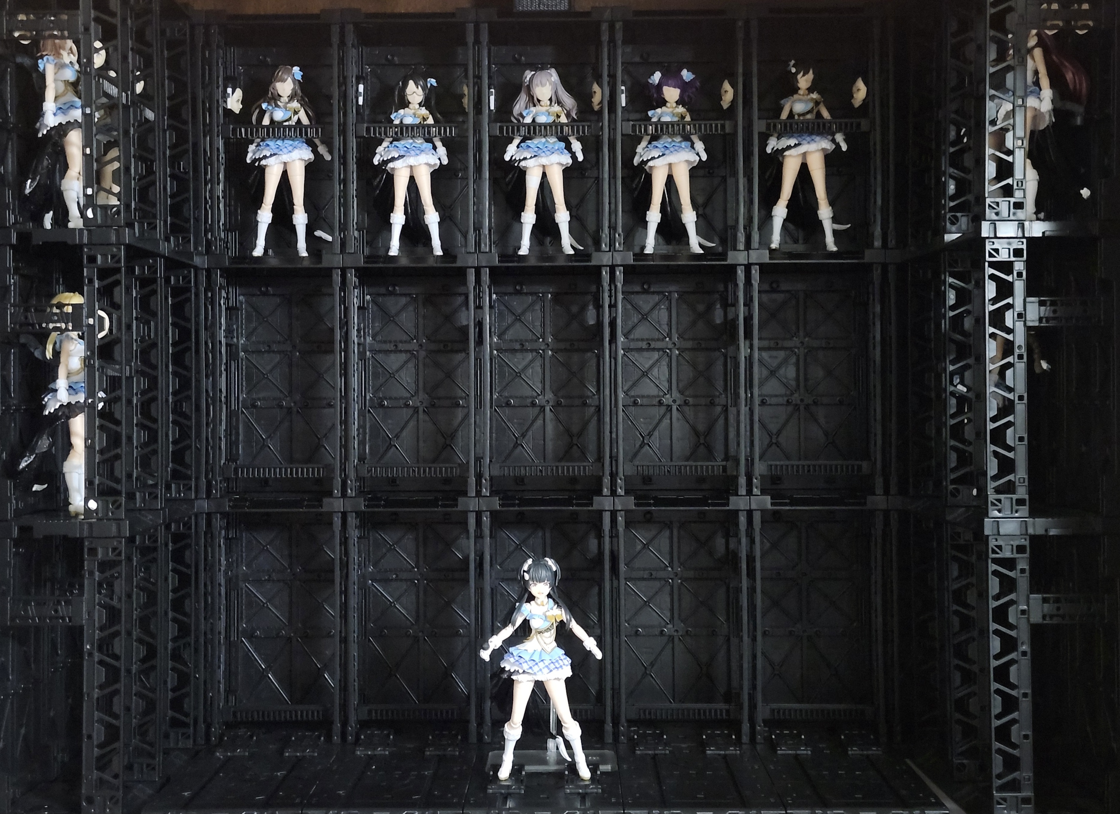 | … | 15325/08/25(月)00:49:23No.1346641964+>メガミじゃないが素体に近いタイプならこう言う力業で綺麗に並べれる >fu5487752.jpg アイドルシリーズ…まだ完成していなかったのか…! |