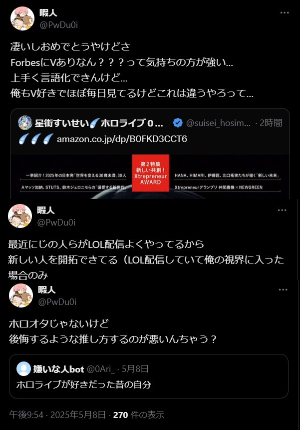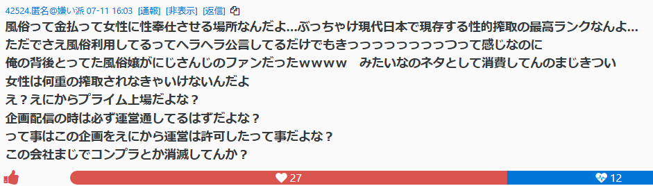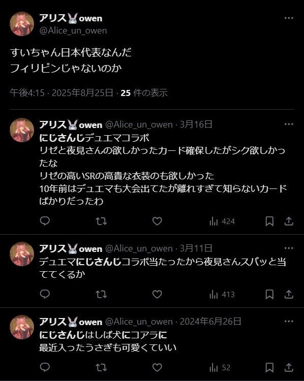 | … | 1025/08/25(月)21:37:56No.1346884795そうだねx7>セクハラと言えばにじさんじの叶では |
