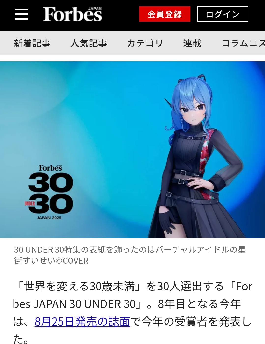 | … | 9425/08/26(火)05:47:45No.1346988138そうだねx5>https://forbesjapan.com/feat/30under30/2019/ |