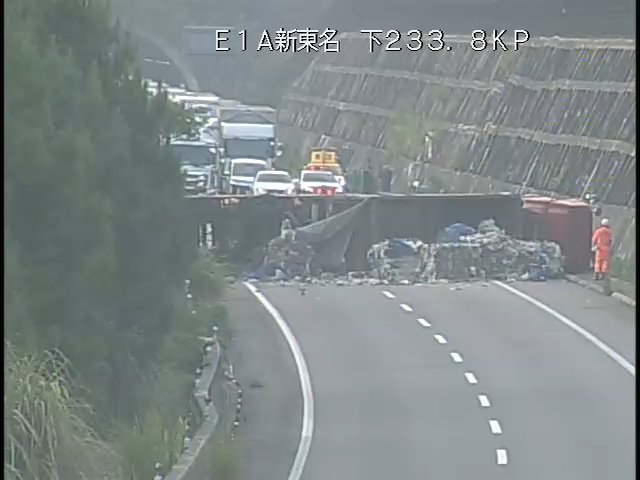 | … | 2525/08/26(火)08:26:51No.1347001659+>愛知県岡崎市の新東名高速の下り線で産業廃棄物を載せたトレーラーが横転しました。 |