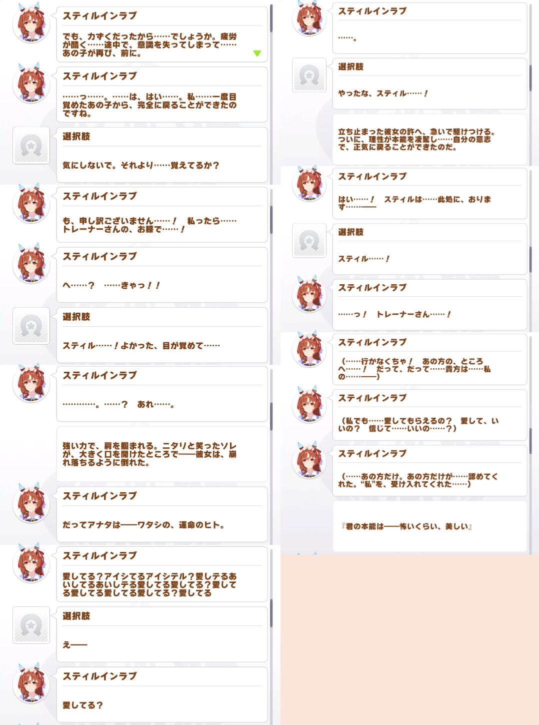 | … | 8325/08/26(火)18:41:04No.1347131381+>ホームに出てくるスティルは育成中の時の設定っていう説みてあーあーうあーになったよね |