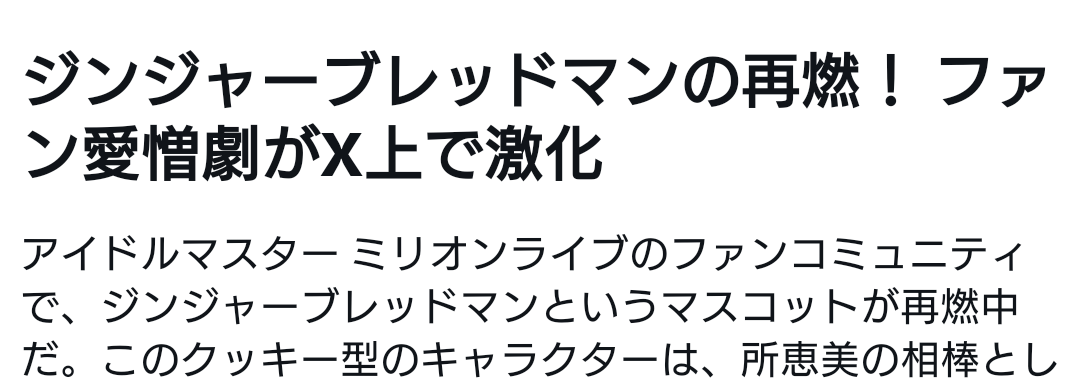 | … | 2125/08/27(水)12:18:55No.1347335834そうだねx5こんなにジンジャーブレッドマンが憎まれてるコンテンツもそうそう無い |