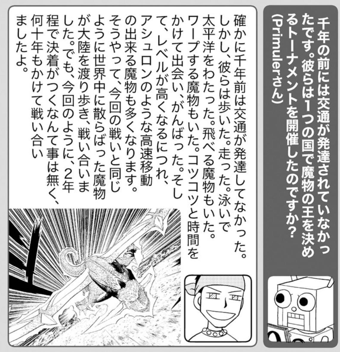 | … | 7325/08/27(水)13:30:38No.1347356027そうだねx9>読み返したらビョンコが一人で1000年前の魔物のパートナー集め切ってて一番凄いのビョンコじゃん…ってなった |