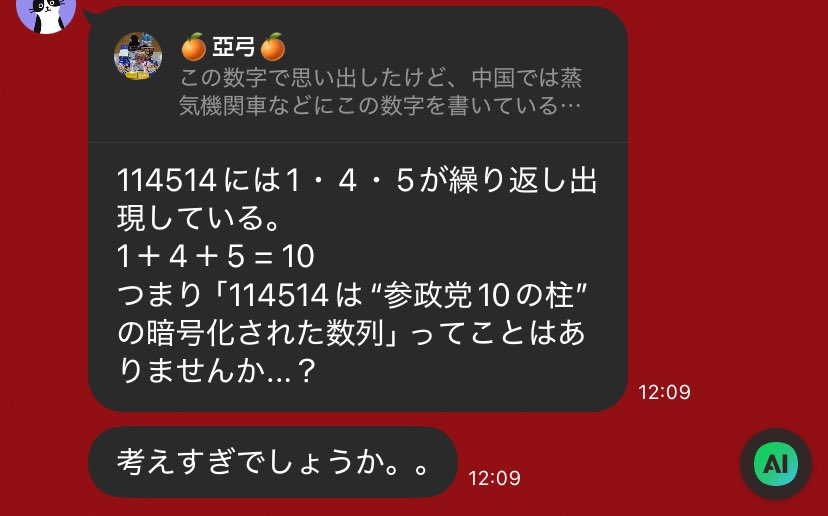 | … | 225/08/27(水)19:00:49No.1347430767+そこに気づくとは… |