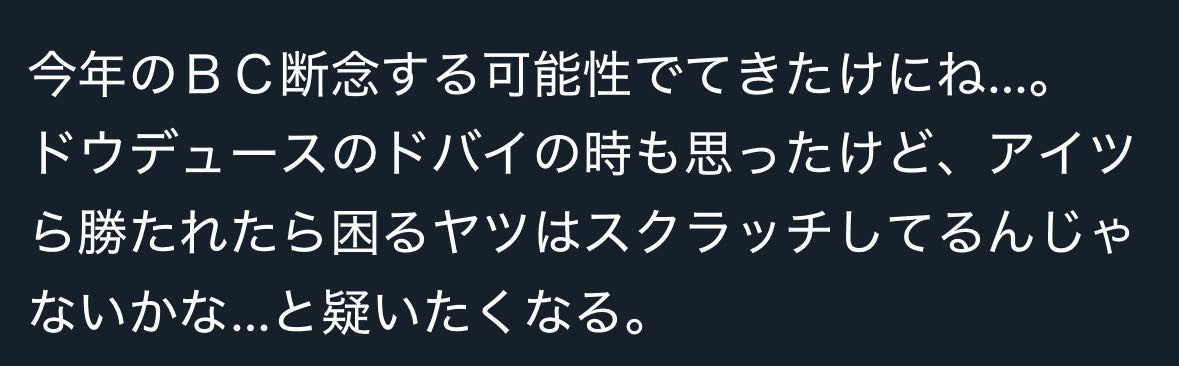 | … | 27925/08/29(金)01:41:37No.1347858089+>あなたBCクラシックだと基本的に勝ち馬と関係ない所で負けるじゃないですか |