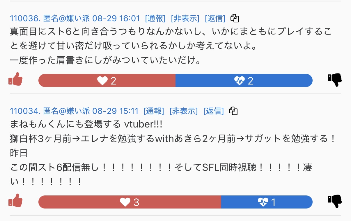 | … | 4025/08/29(金)16:42:03No.1347981718そうだねx11格ゲースレでもにじさんじにせぇやってわめくのやめてもらっていい? |