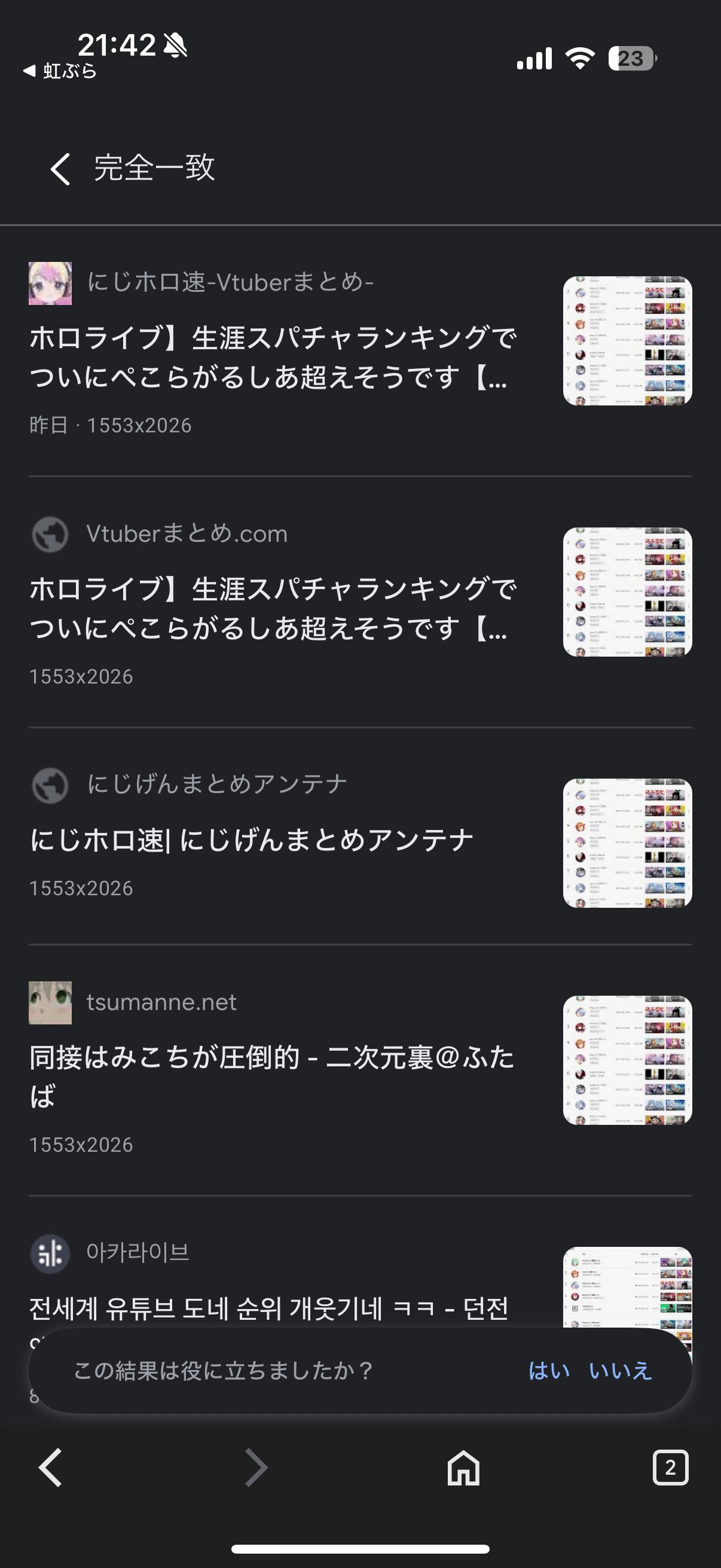 | … | 5625/08/29(金)21:41:50No.1348084722+>あのーなら所属人数倍のにじさんじ女ライバーがホロより多くランクインしてるはずです |