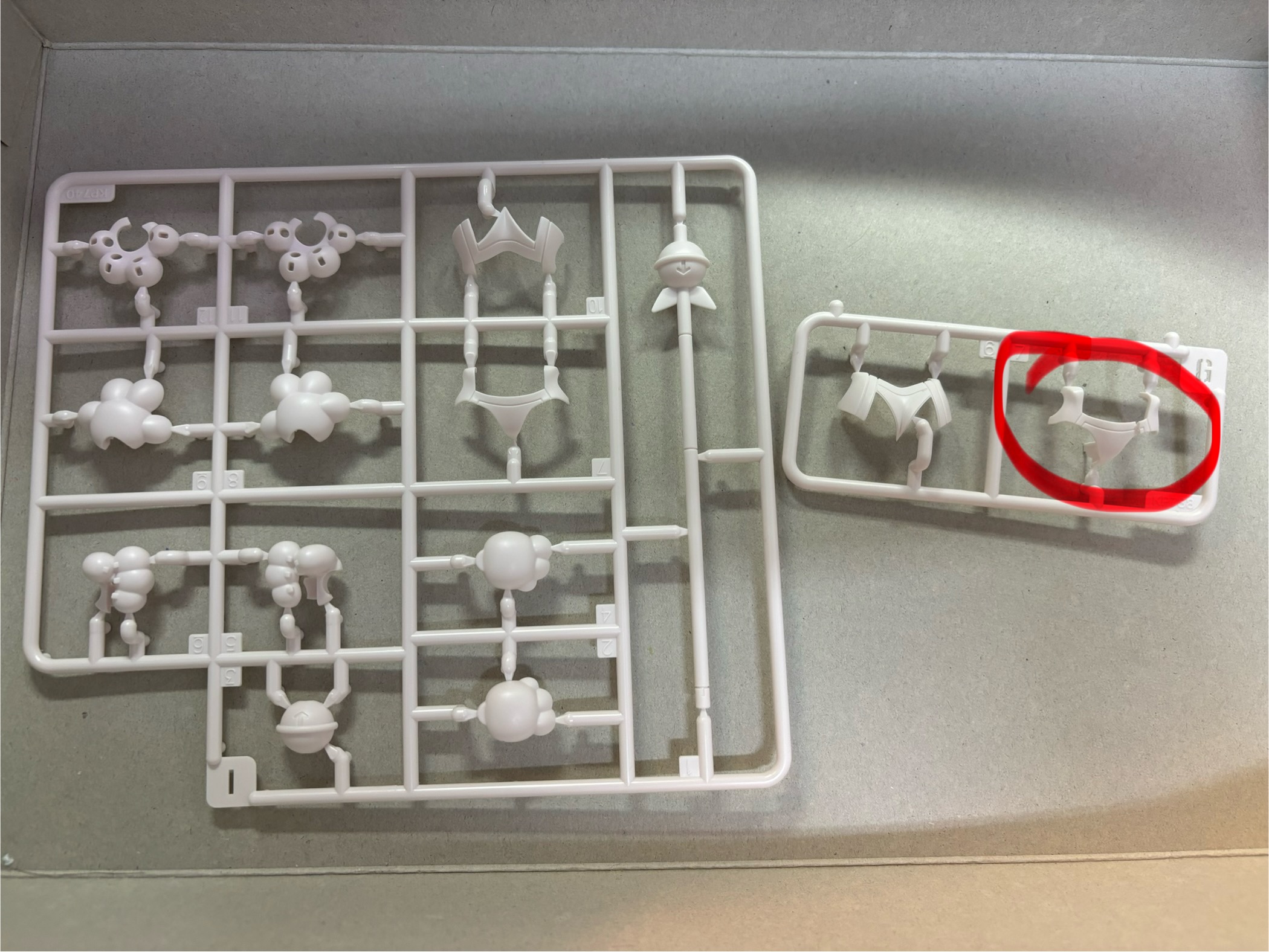 組む前にランナーの整理してたらG7が割れてたのを発見いたしまして開封前から割れてたのか開封の拍子に割れてたのか不明な状態です