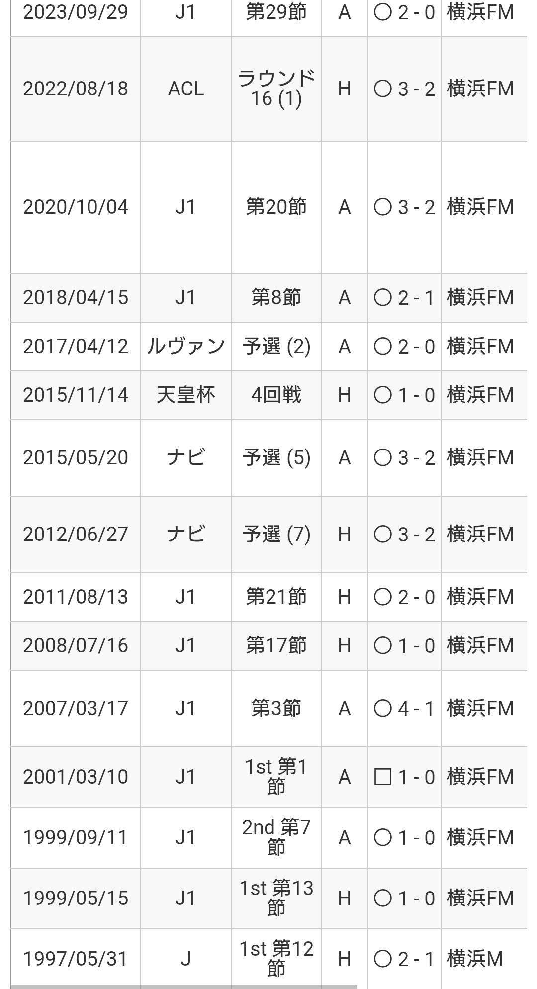 | … | 925/08/30(土)21:00:57No.1348404396+14年ぶりにホームでマリノスに勝利 |