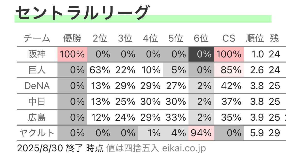 | … | 32125/08/30(土)23:11:39 ID:RCt8S3QkNo.1348459539+5位なれるならCS圏内になるこの難しさ |
