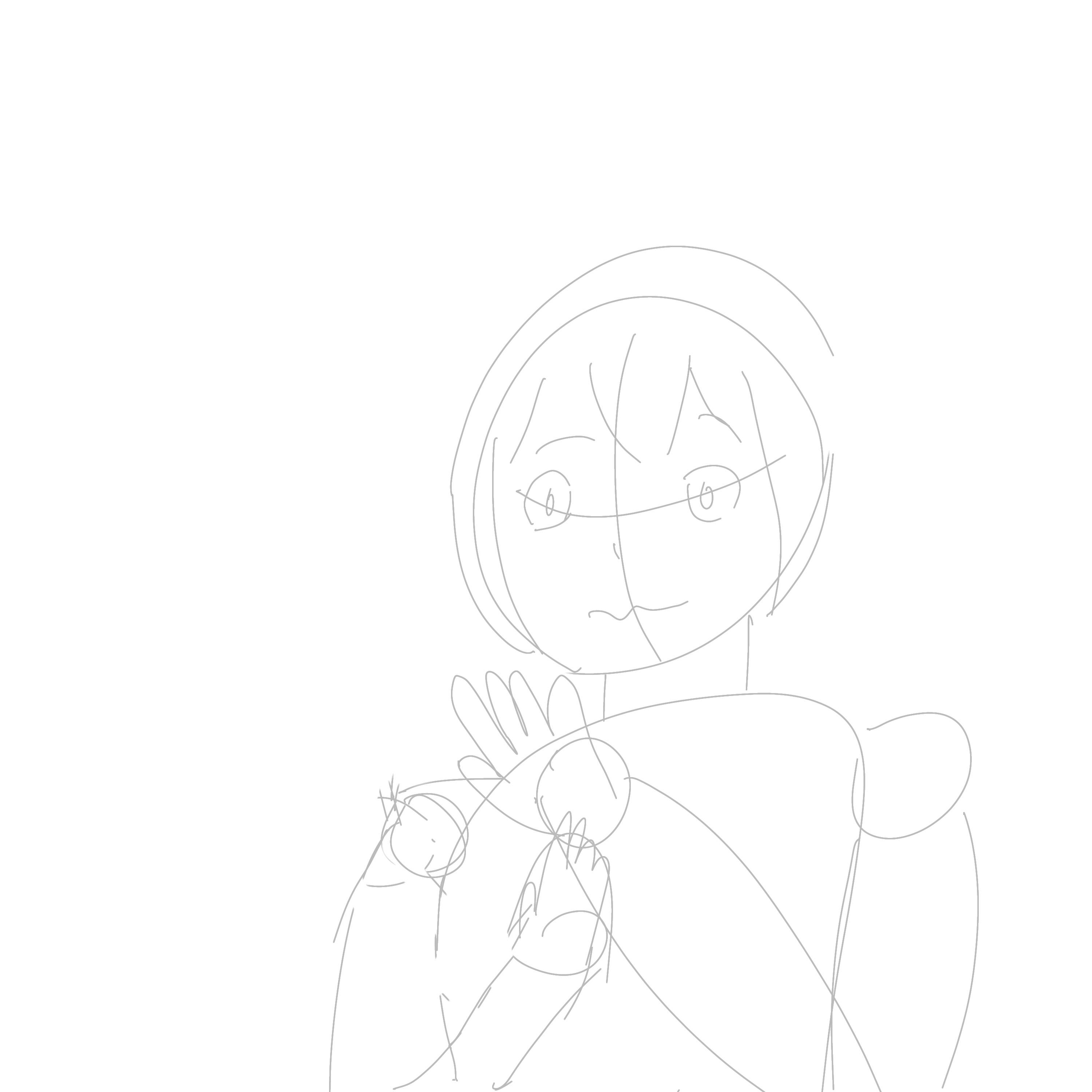 大まかな構図→ラフ→清書1st→清書2ndしないとまともな線にならないから…