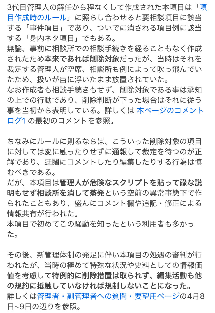 | … | 7725/08/31(日)15:29:39No.1348658140+>最近のモンハンwikiの騒動で思い出したのがコレだった |