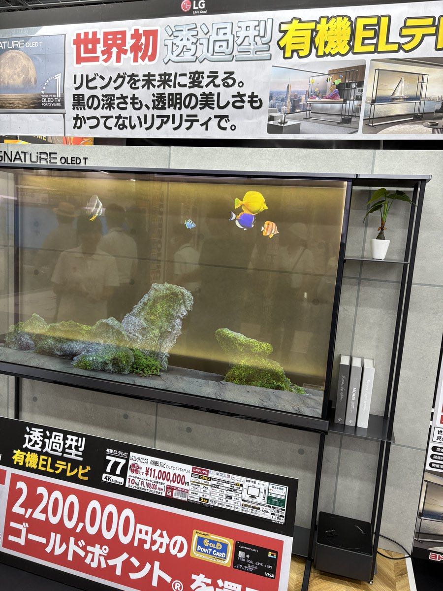 | … | 18925/08/31(日)15:13:17No.1348653607そうだねx1これ水槽映像流す以外で透明である必要ある…? |