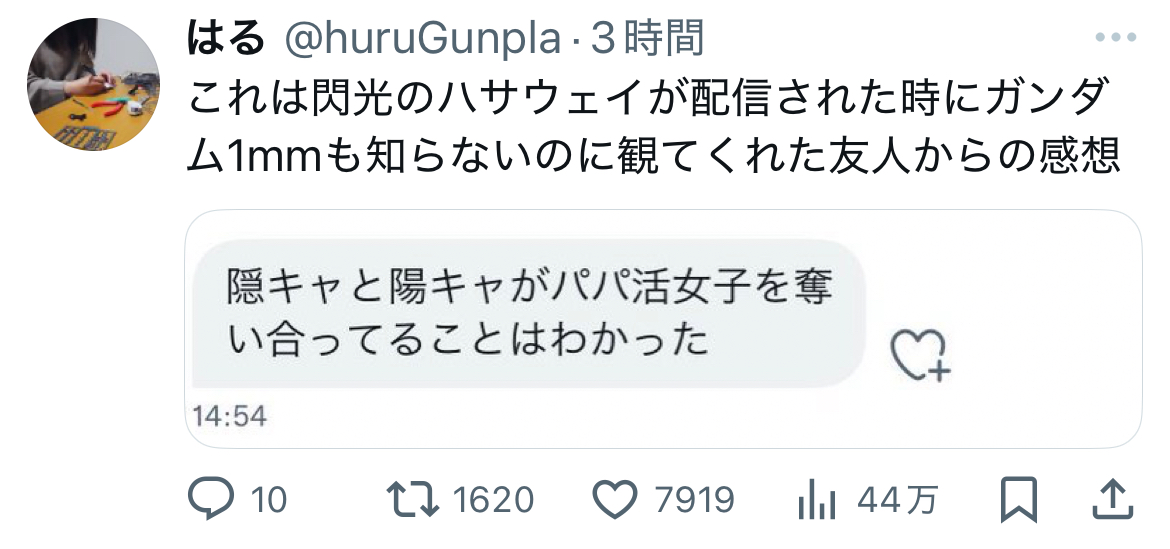 | … | 4425/09/01(月)16:14:37No.1348991118そうだねx2ハサウェイにとってはパパ活女子じゃなくてその女子の向こう側に面影見てる亡霊がファム・ファタールだからな |