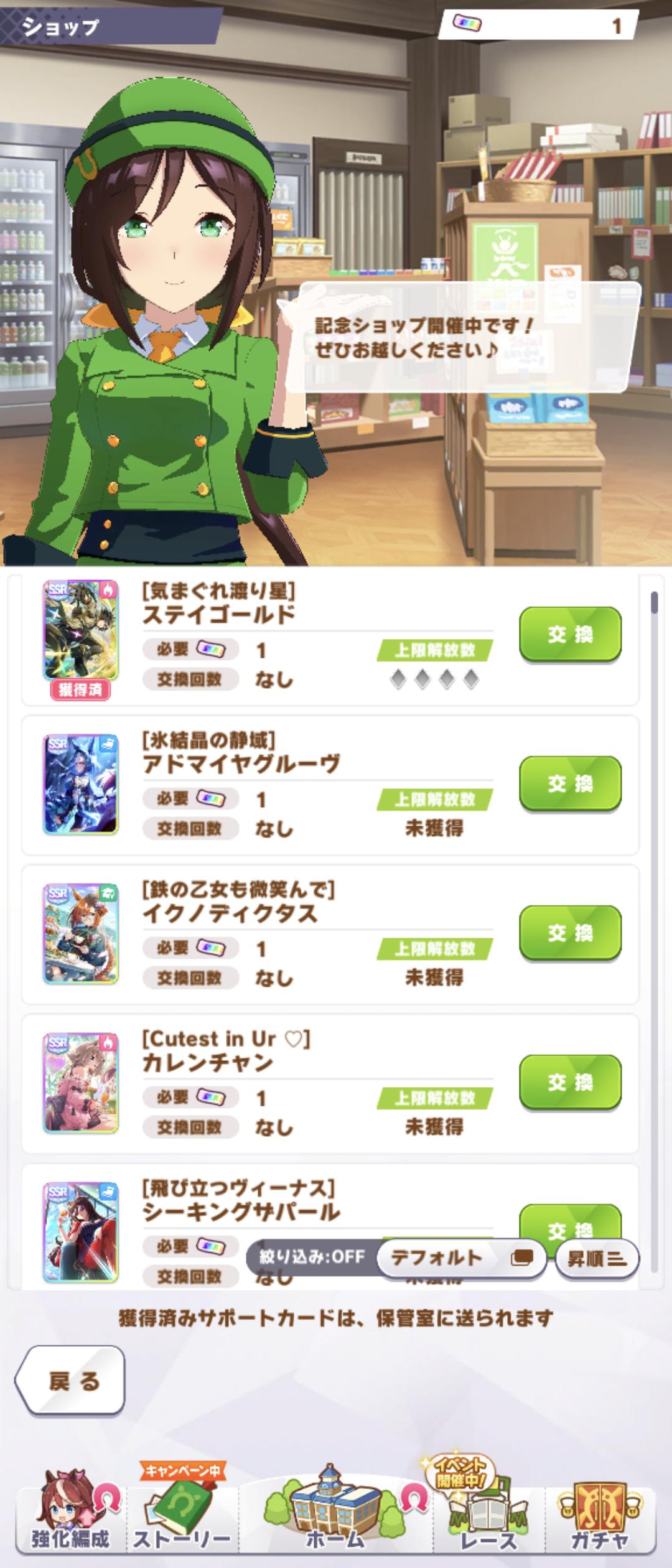 | … | 58125/09/02(火)06:12:11No.1349211108そうだねx1賢さカイチョー自体はまあ強いんですが 今強いて押せるかと言うと難しいです とはいえ虹石や交換チケでは友人以外のSSRで新しめのものから選ぶとよいです |