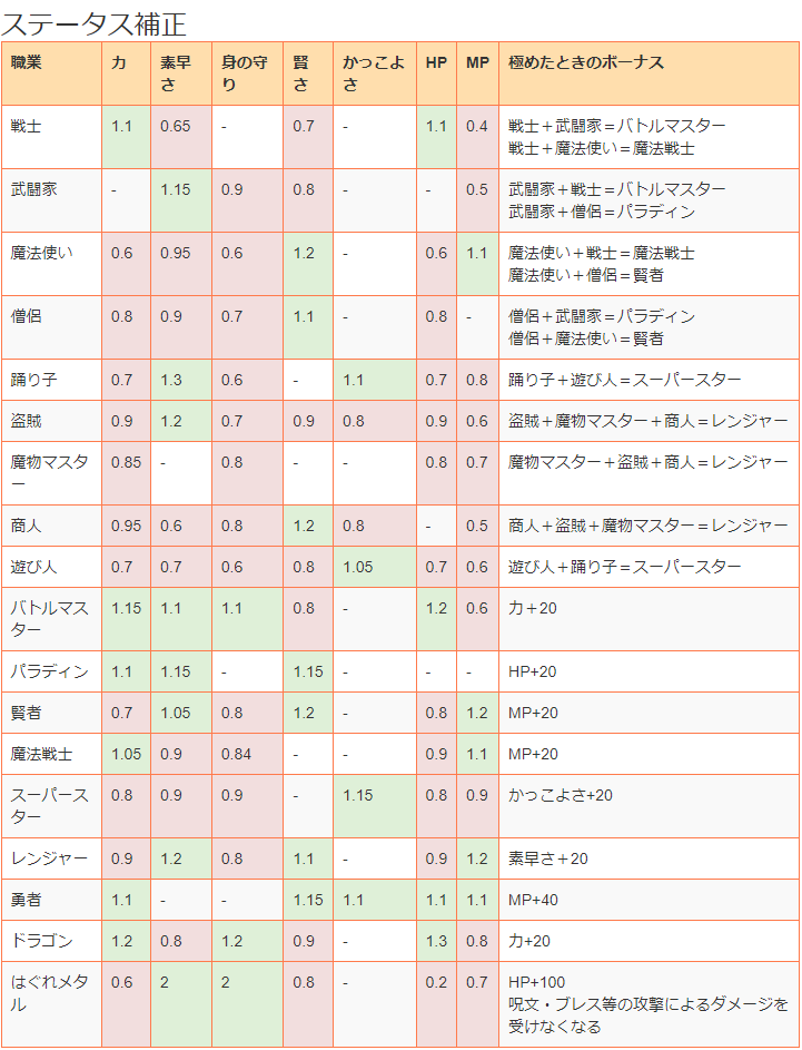 | … | 17825/09/02(火)18:55:54No.1349354019そうだねx2まあ6の職はステータス補正以外にも先制確率アップとかHP自動回復とか職業固有のボーナスがあるから |