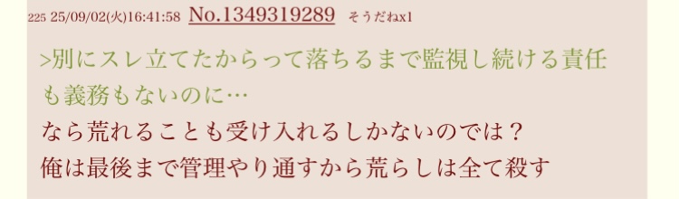 | … | 425/09/02(火)16:48:51No.1349320772+これ俺への殺人予告か?掛かって来いよ雑魚が |