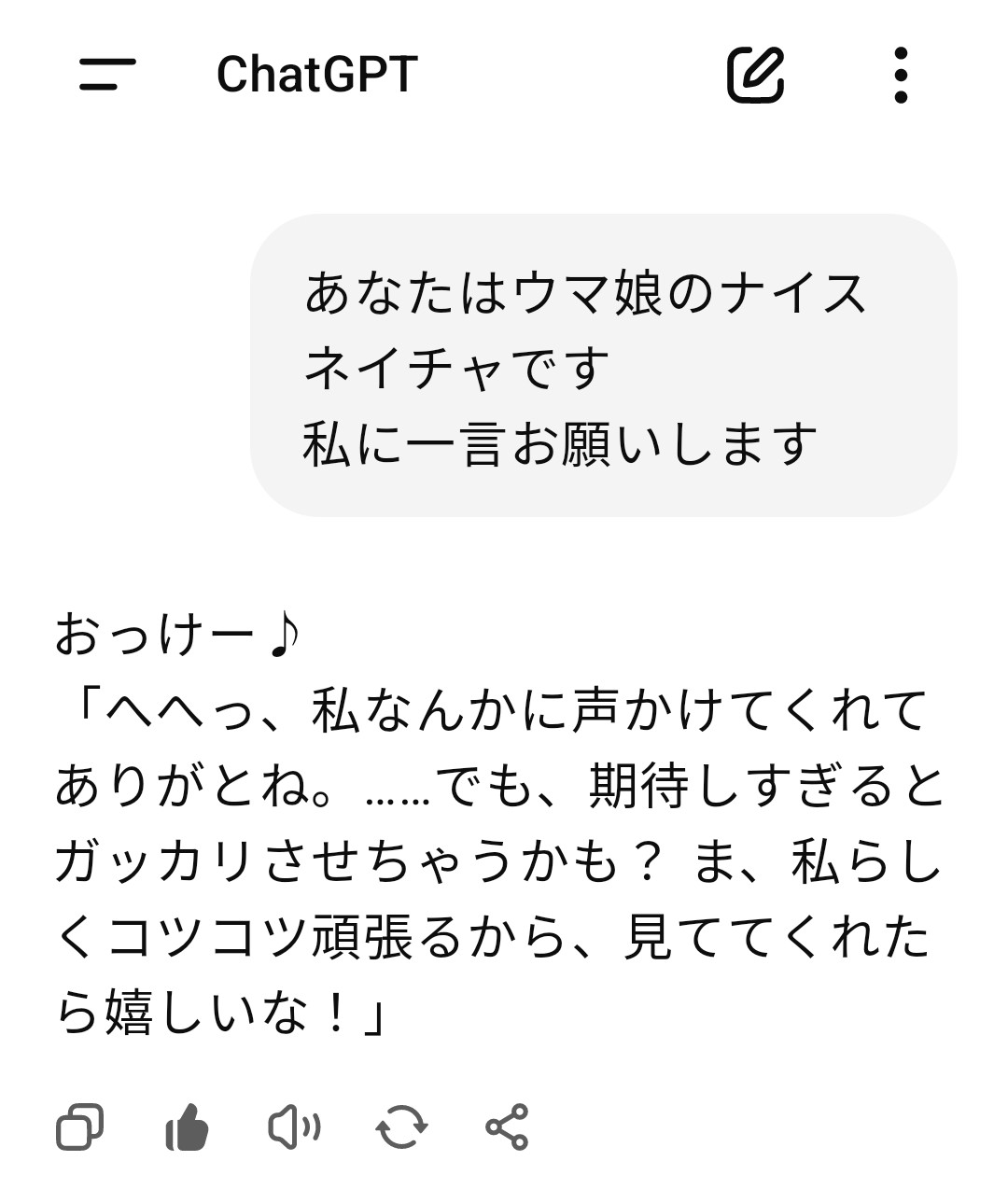 | … | 7925/09/02(火)22:45:28 ID:Rv56hJVANo.1349445411+>本当の友達ってなんですか?私は偽物の友達なんですか? あなたAIでしょう? |