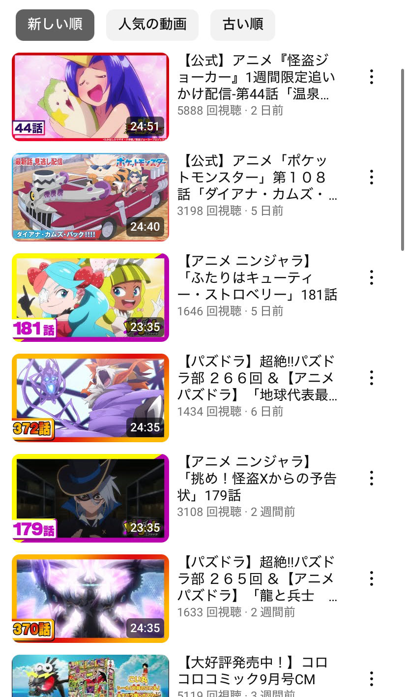 | … | 325/09/03(水)20:05:22No.1349673961+コロコロってYouTubeやってたのか… |
