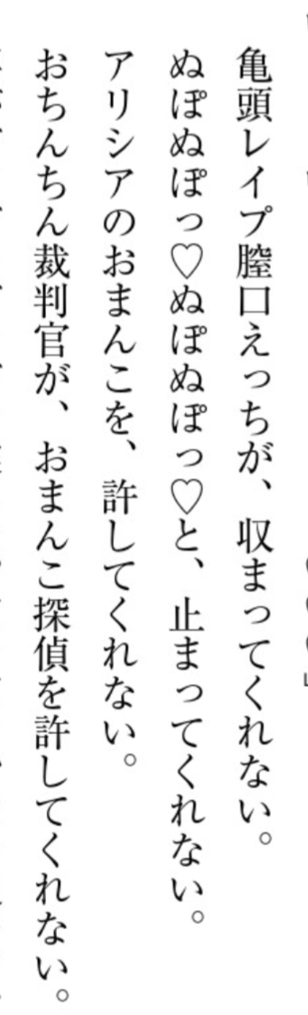 | … | 7425/09/04(木)00:39:03No.1349771710そうだねx7>おちんちん裁判官が、おまんこ探偵を許してくれない。 |