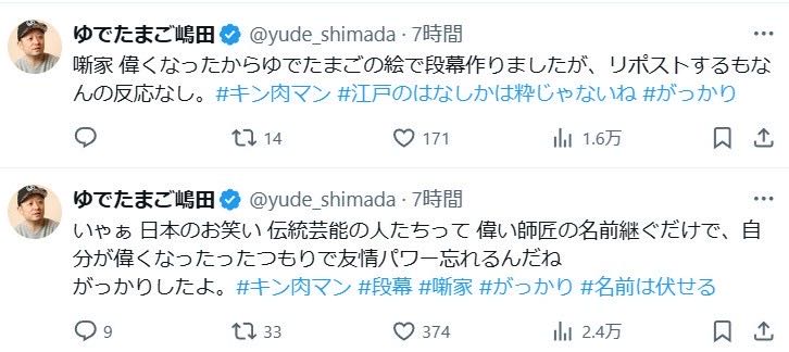 | … | 90425/09/04(木)18:23:24No.1349927753そうだねx1嶋田のせいでゆでがカス扱いされるのきつい |