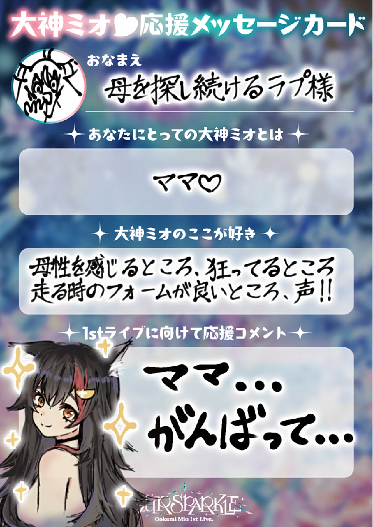 | … | 625/09/04(木)18:57:04No.1349937014そうだねx31>デビュー前はミオしゃの赤ちゃんの部屋でぬくぬく温まってたと自称してるから |