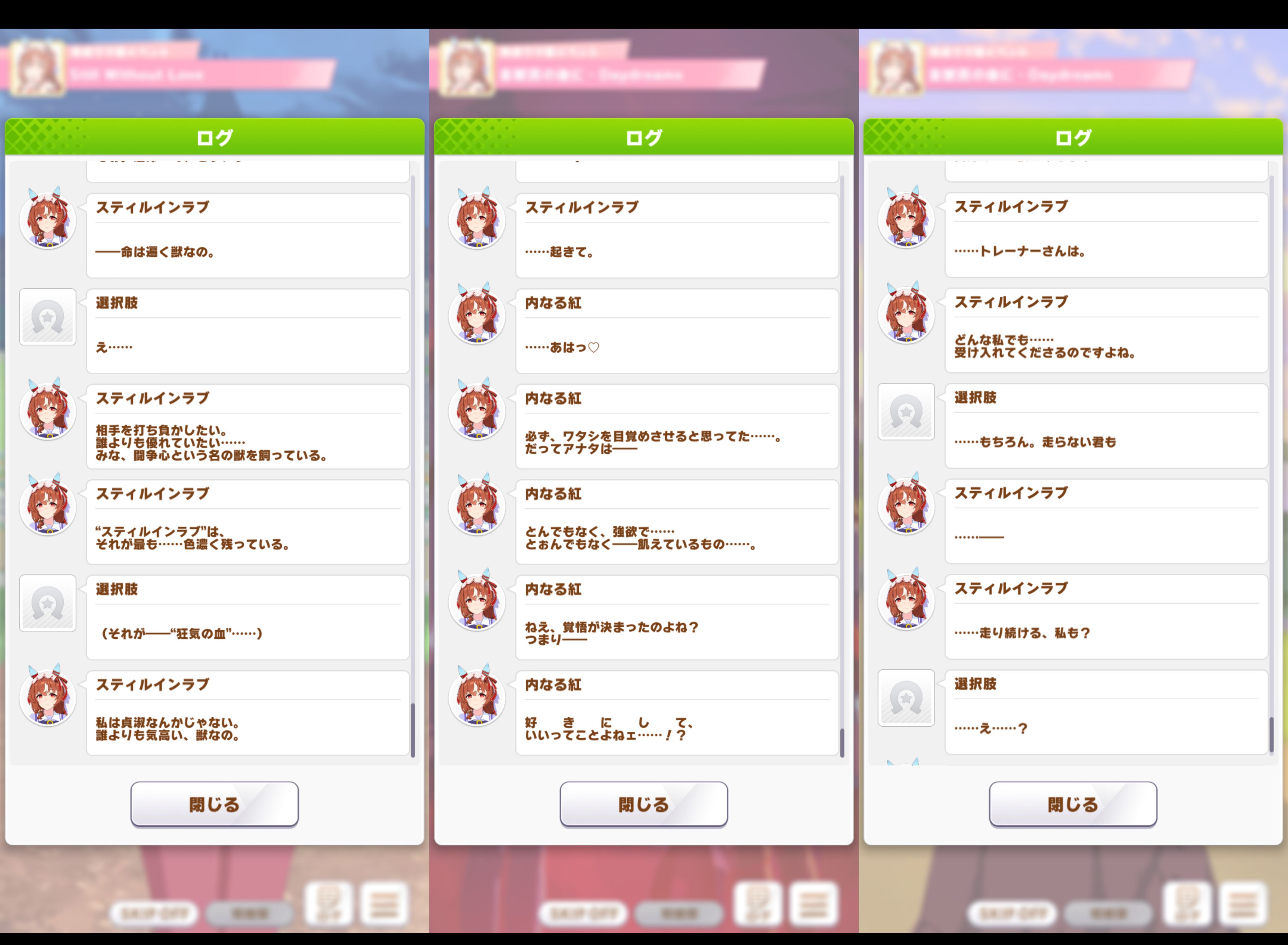 騎手との縁が深い>>ユニちゃんみたいに運命の出会いはしてるけど運命捻じ曲げてるのはどれもスティルと紅の方だよね