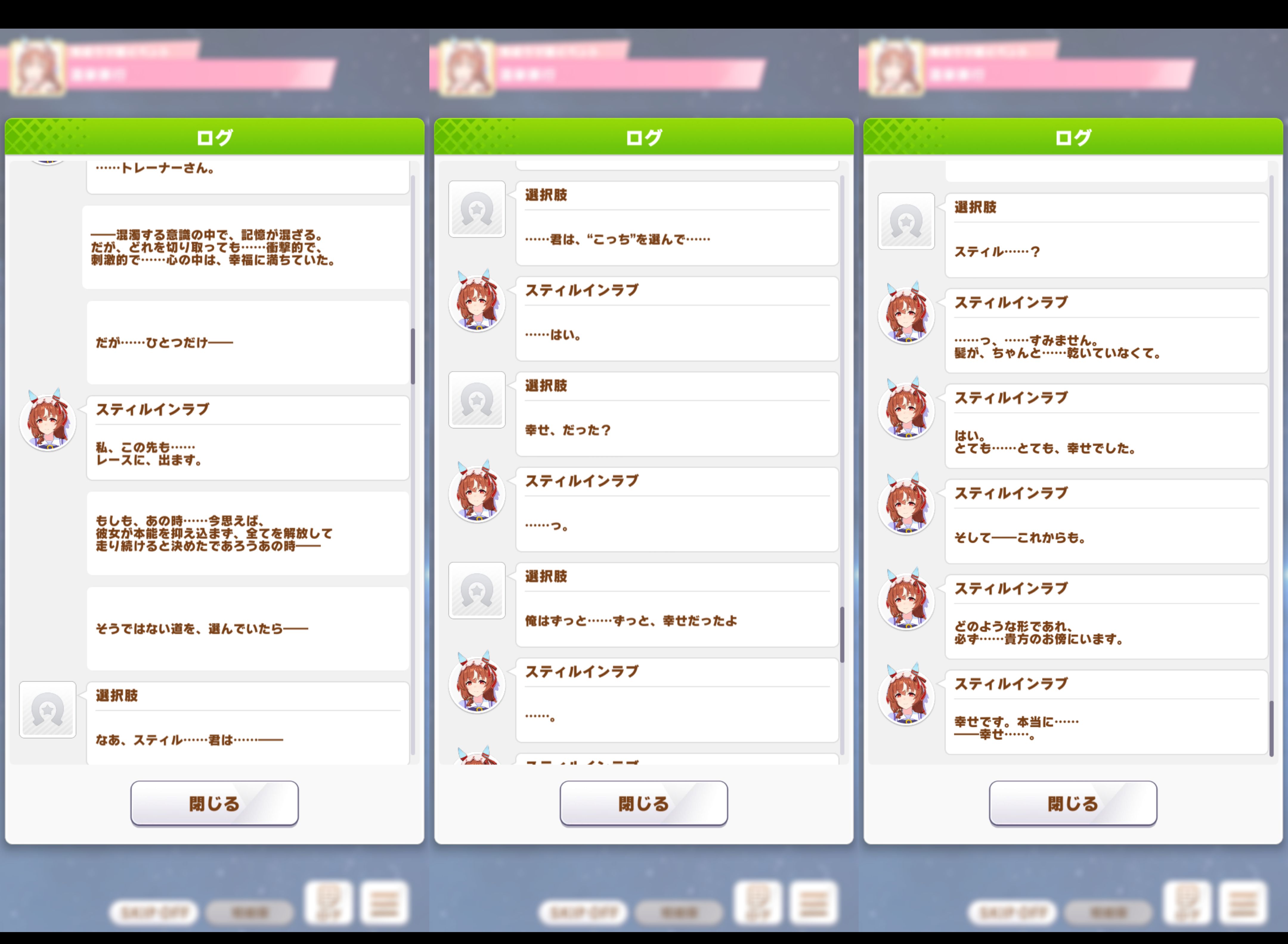 トレーナーの心の中にスティルがいてずっと愛する原作の関係に回帰して終わる