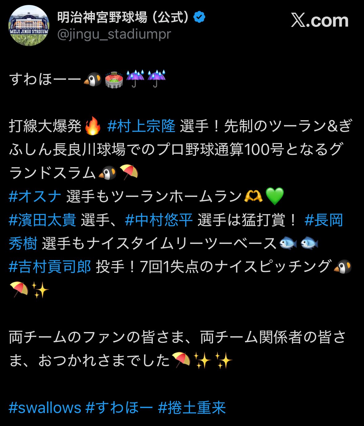 | … | 43725/09/05(金)13:01:42 ID:R4fvMAH6No.1350147778そうだねx2この度、当球団のファン(@swallowsamateur)を装った「」のレスが確認されました。 |