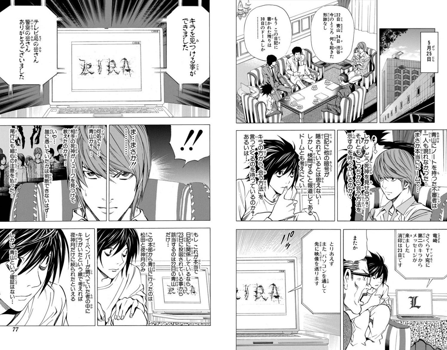 | … | 9325/09/05(金)15:32:45No.1350181060+デスノート人狼きっかけで読み直したけどやっぱ竜崎倒れるまでめっちゃ面白いわ |